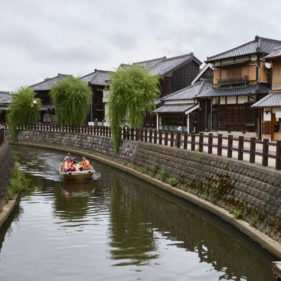 From Narita Airport in Chiba Prefecture, embark on a special journey to escape the hustle and bustle of the city. Purify your spirit at Naritasan Shinsho-ji Temple with its thousand years of history, and savor the famous eels along the temple’s main approach. In Sawara, a town known as “Koedo (little Edo)”, leisurely cruise through the townscape full of Edo-period charm aboard a small boat. The scene of willows swaying over the water and old merchant houses lining the river embodies Japan’s timeless landscape.